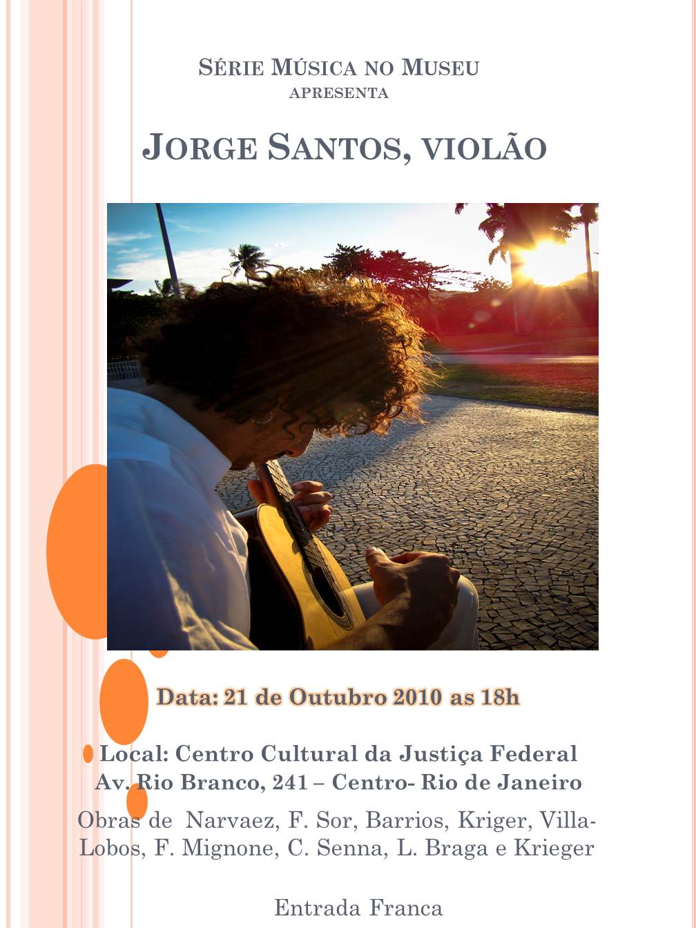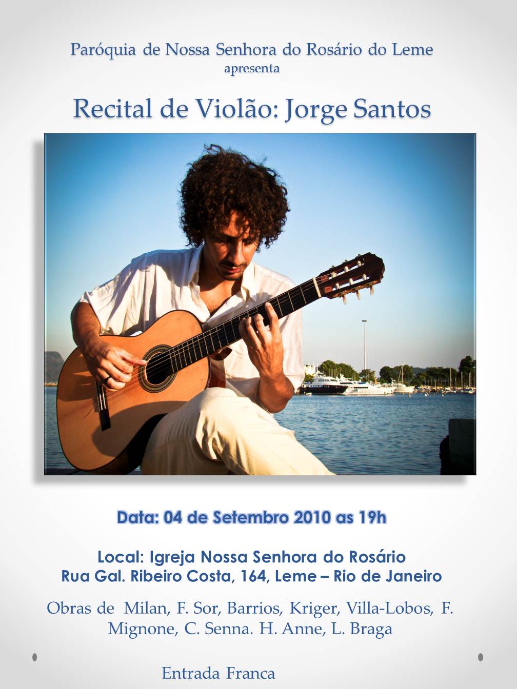 Programa: Villa-Lobos, Sor, Mignone, Krieger, H. Annes, Caio Senna, Barrios outros.