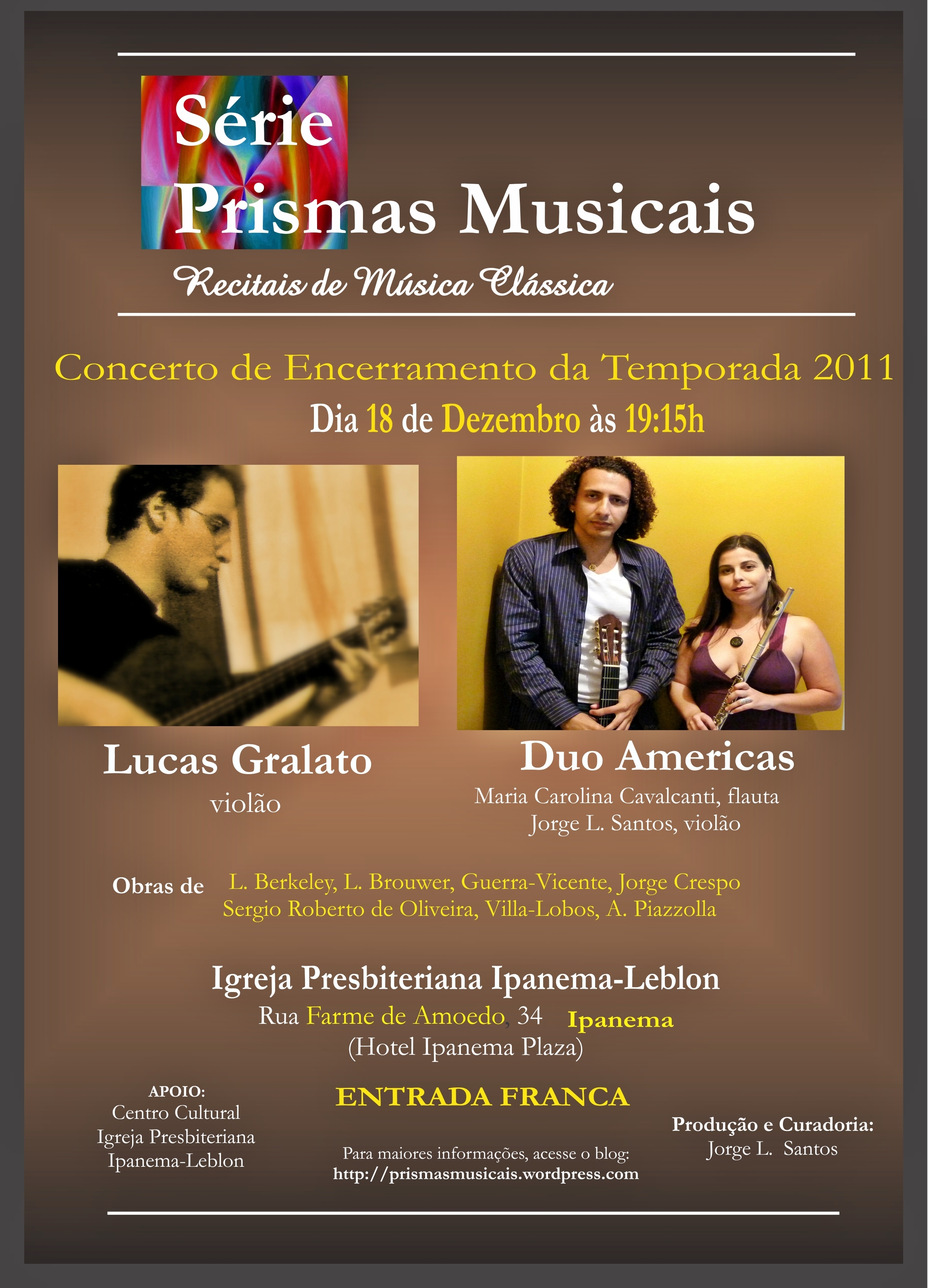 Programa: J.S. Bach, Barrios, F. Sor, Sergio Roberto de Oliveira, F. Scheneiter, outros